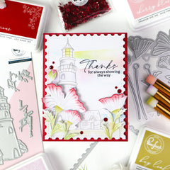 Bring comfort and strength to your projects with this coastal lighthouse stamp set, designed by Kaitlin Sheaffer. The tall lighthouse and cozy cottage create a peaceful shoreline scene. This set helps you send strength when it matters most. Coordinating products for purchase separately: Guiding...- $16.00