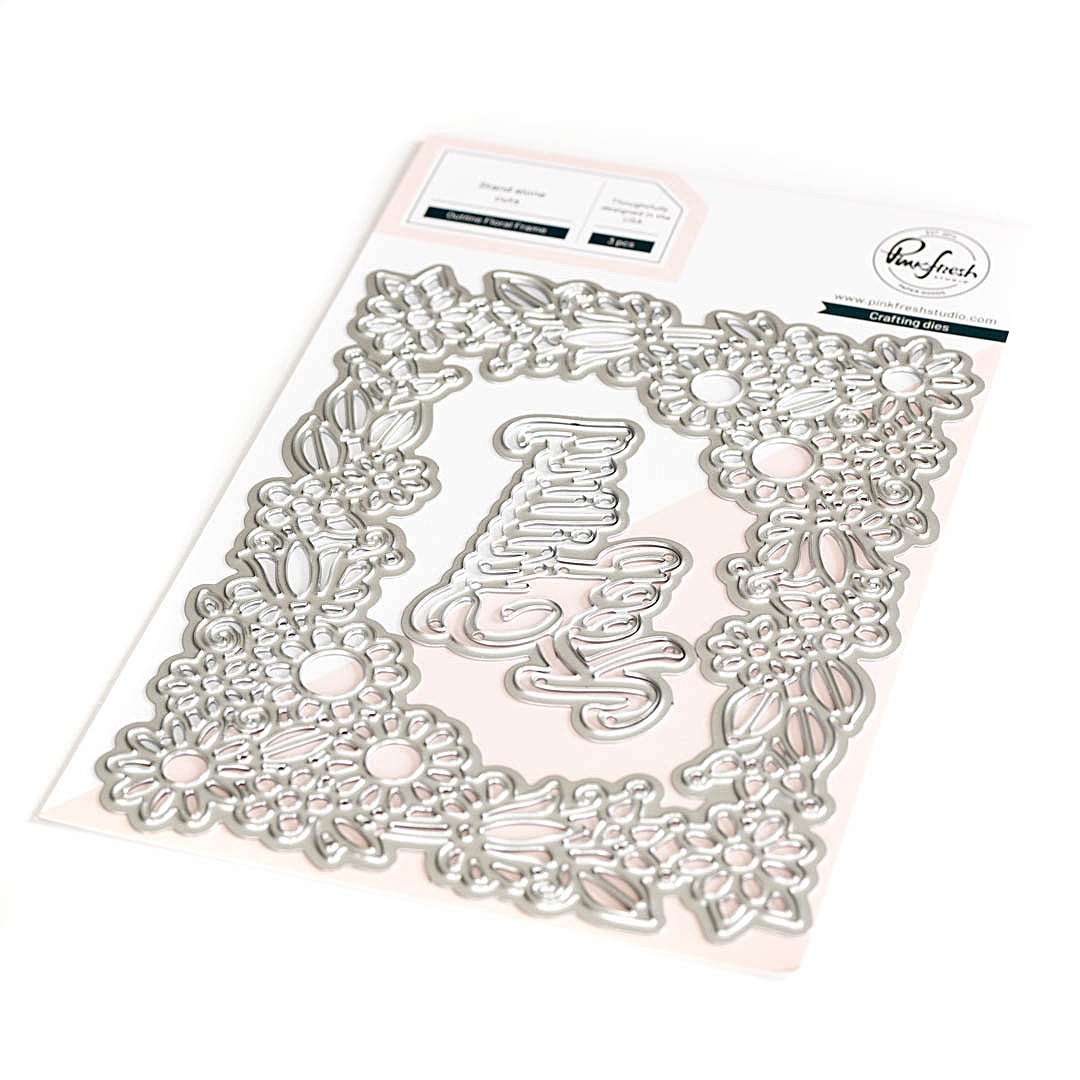 3 piece die designed by Paige Evans. Fresh & fun, this whimsical floral frame offers a playful design element for every papercrafting project. Stack multiple cuts together for added dimension, or use the die to dry emboss a subtle background. There is also a fantastic Keep Smiling word die and shadow die to complete your greeting card sentiment or add as a fun title to your scrapbooking layout!