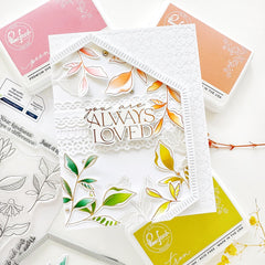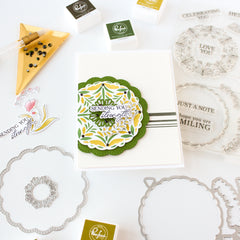 This set showcases the same large, elegantly scripted sentiments found in coordinating stamp set. Designed to coordinate seamlessly, they pair perfectly with the coordinating dies. You can use them alone for a refined, standalone look, or pair them with the coordinating stamped secondary sentiments...- $19.00