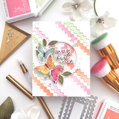 5 piece layering stencil set made to coordinate with the Fluttering Butterflies stamp set, and Fluttering Butterflies dies. There is also a Fluttering Butterflies washi tape available in the product suite. There is a separate stencil for each layer, with guidelines on each stencil...- $19.00