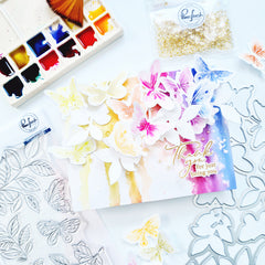 4 x 12 photopolymer clear stamp set designed by Valentine Leclerc. Made to coordinate with the Fluttering Butterflies die, Fluttering Butterflies layering stencils and Fluttering Butterflies washi tape. Available for purchase separately. This innovative stamp includes the greenery and butterflies on one stamp, so...- $24.00