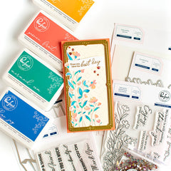 4 x 6 photopolymer clear stamp set designed by Kaitlin Sheaffer. Made to coordinate with the Beyond Happy die set. Available for purchase separately. This 8-piece sentiment stamp set is full of heartfelt sentiments for many occasions! Including birthday, congratulations, thanks & more, your...- $16.00