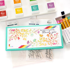 4 x 6 photopolymer clear stamp set designed by Inna Moreva. Made to coordinate with the Thanks for Being There die set & Thanks for Being There layering stencil set. Available for purchase separately. This versatile stamp set offers one lovely cluster of floral...- $16.00