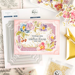 3 pc die set to coordinate with the Handpicked Flowers stamp set and Handpicked Flowers layering stencil set. The main die cuts around the floral cluster leaving a thin white border. There are also two dies to cut out the scripted sentiments. Approximate Measurements:...- $14.00