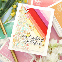 4 pc die set to coordinate with the Humbled & Grateful stamp set and Humbled & Grateful layering stencil set. The main 1-piece die cuts out the flower stems, leaving a thin border. There are also three dies to cut out the larger, scripted...- $18.00