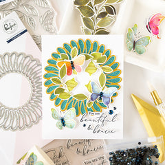 5 pc die to coordinate with the Fluttering Butterflies stamp set, Fluttering Butterflies layering stencils and Fluttering Butterflies washi tape. Due to the nature of its size, you may need extended plates for your diecutting machine, or will have to pass it through twice...- $26.00