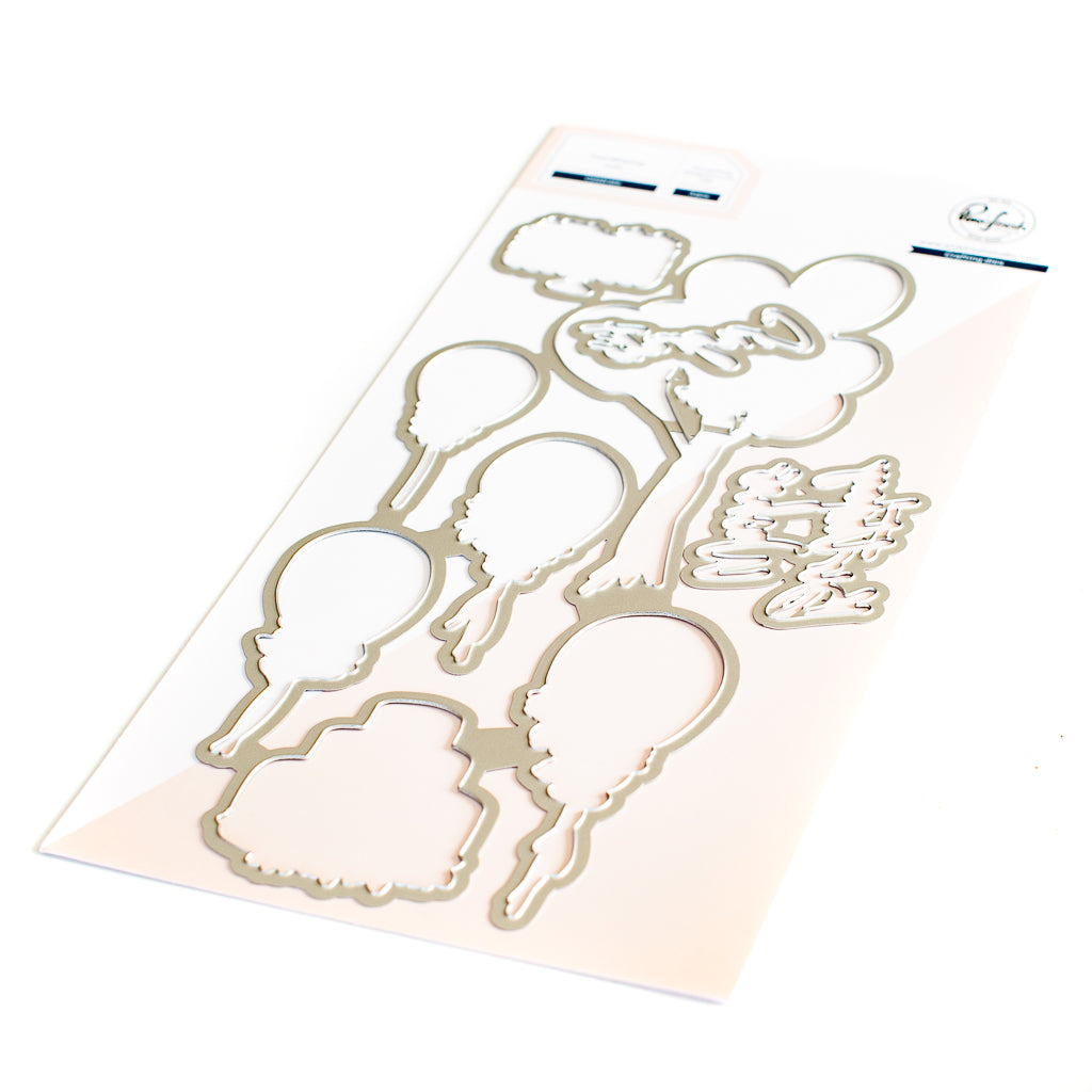 3 pc die to coordinate with the Celebrate stamp set, Celebrate layering stencils and Celebrate washi tape. Due to the nature of its size, you may need extended plates for your diecutting machine, or will have to pass it through twice to diecut entirely.