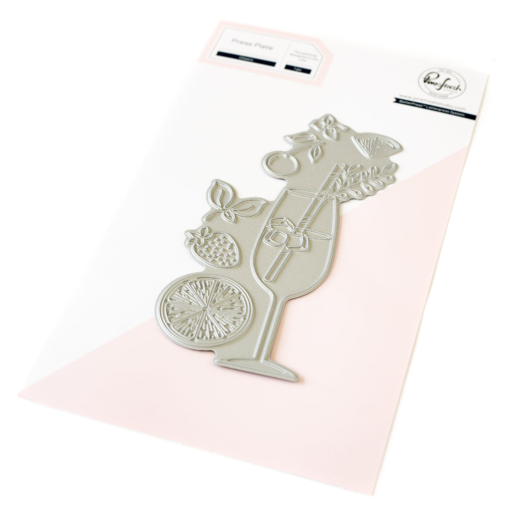 1 pc press plate set designed by Inna Moreva. Made to coordinate with the Cheers stencil set and the Cheers die set. There is also a matching Cheers stamp set. Available for purchase separately.
