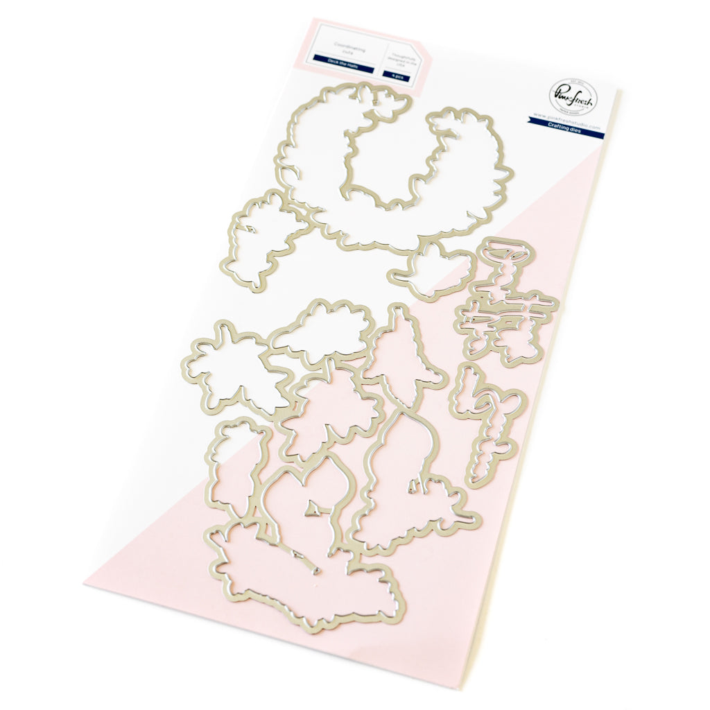 4 pc die set to coordinate with the Deck the Halls stamp set, Deck the Halls washi tape and Deck the Halls stencil set. There are (2) 1-piece dies to cut around the ornament & greenery clusters, and dies for cutting out the scripted sentiments.