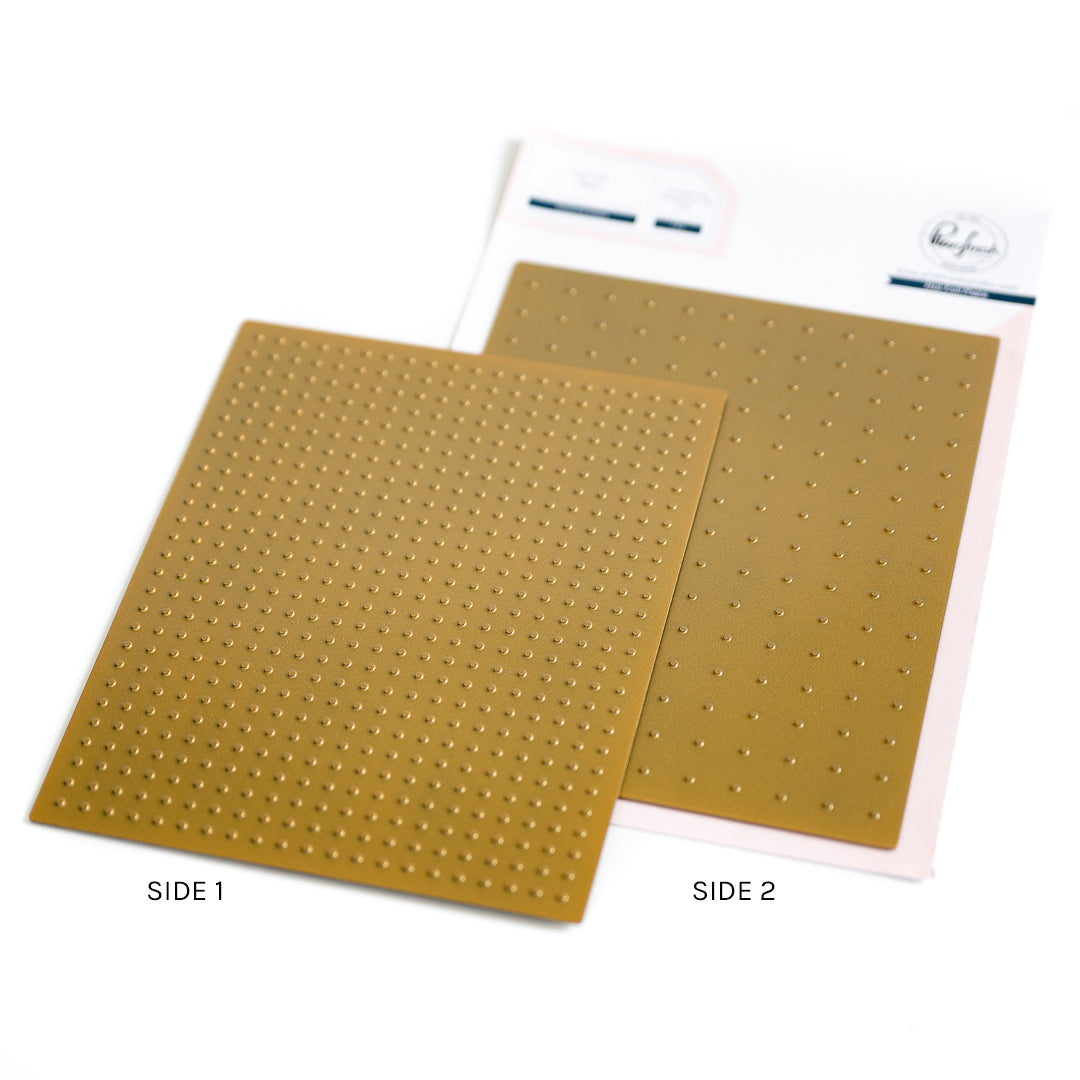 Add refined texture and timeless charm to your projects with the Double-Sided Swiss Dots hot foil plate designed by Kaitlin Sheaffer. This versatile design features a classic dotted pattern on both sides—giving you two distinct looks in one tool.