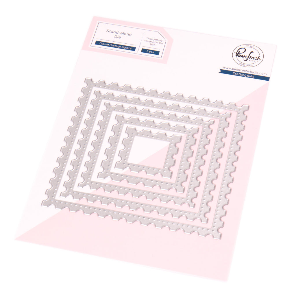 Create polished cards with this die set featuring postage squares with a line of dots/pierce points around the outer edges. The nested sizes allow for endless combinations.