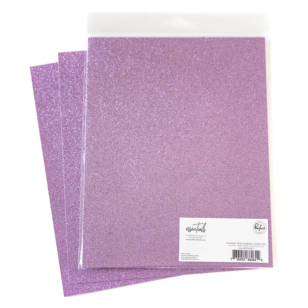 Your paper crafting creations will sparkle & shine with our Candy Violet glitter cardstock pack! Our high quality 8.5” x 11” glitter cardstock is 250 gsm, non-shedding and easy to diecut. For more intricate dies, you may need to use a metal shim or the bubble mailer technique.