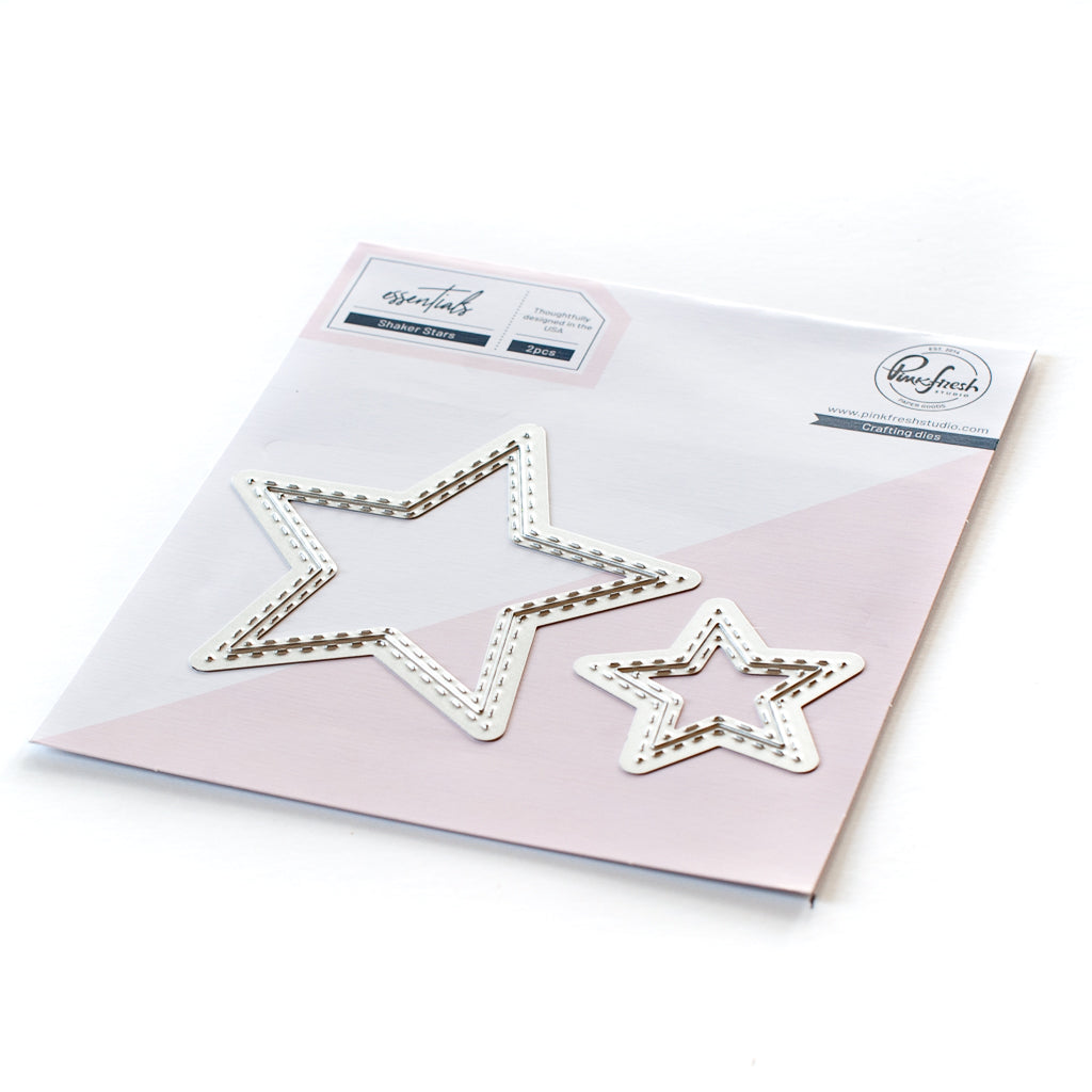 2 piece die set designed as an essential for crafting basics. This die set includes two stars with a dual stitched edge. This leaves a stitched edge on your shaker window, and also adds a stitched edge to your diecut star. However you plan to use these versatile star dies, they will always have our signature stitched edge.