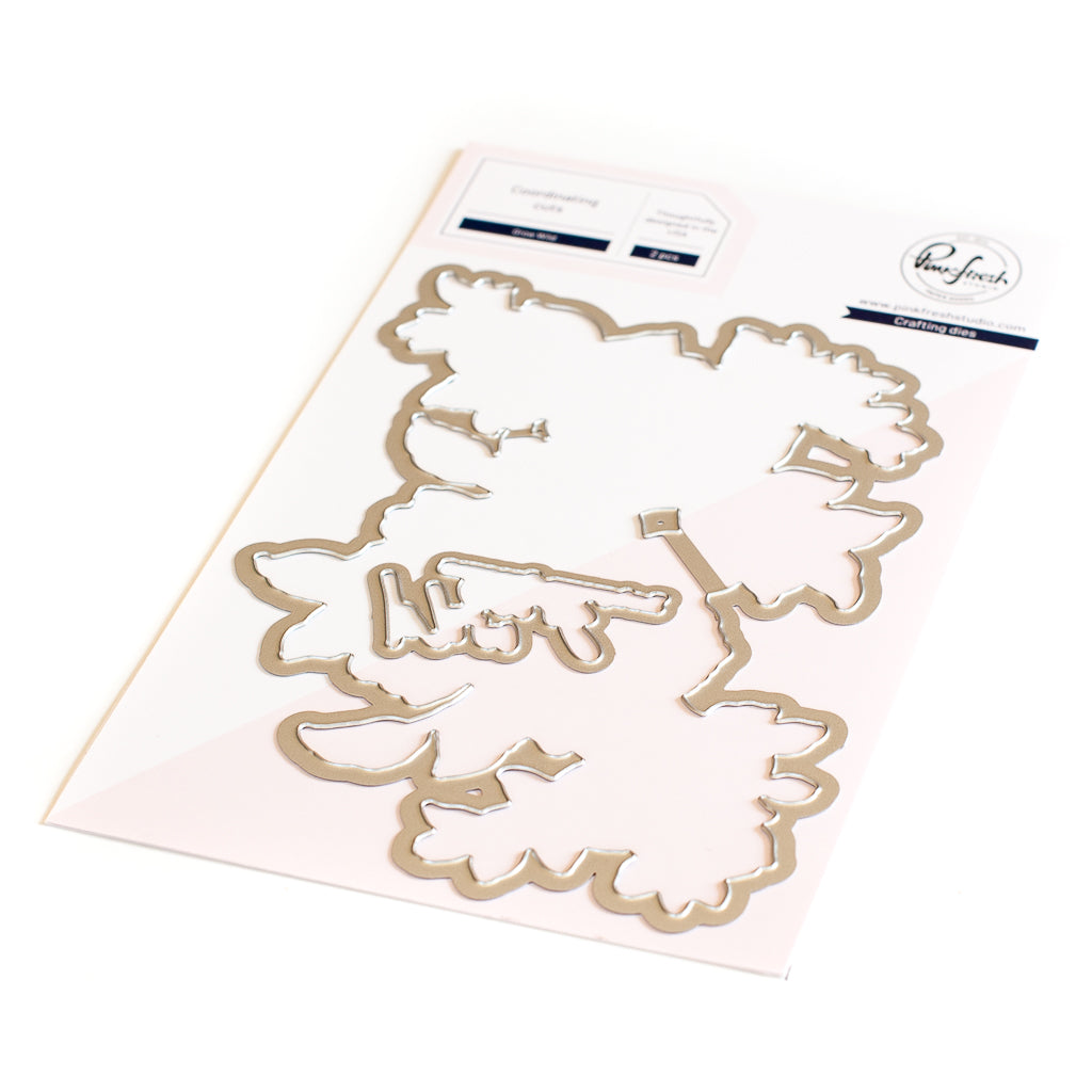 2 pc die set to coordinate with the Grow Wild stamp set and Grow Wild layering stencil set. This die set cuts around the entire bouquet of florals and the main sentiment, leaving a thin border around each.