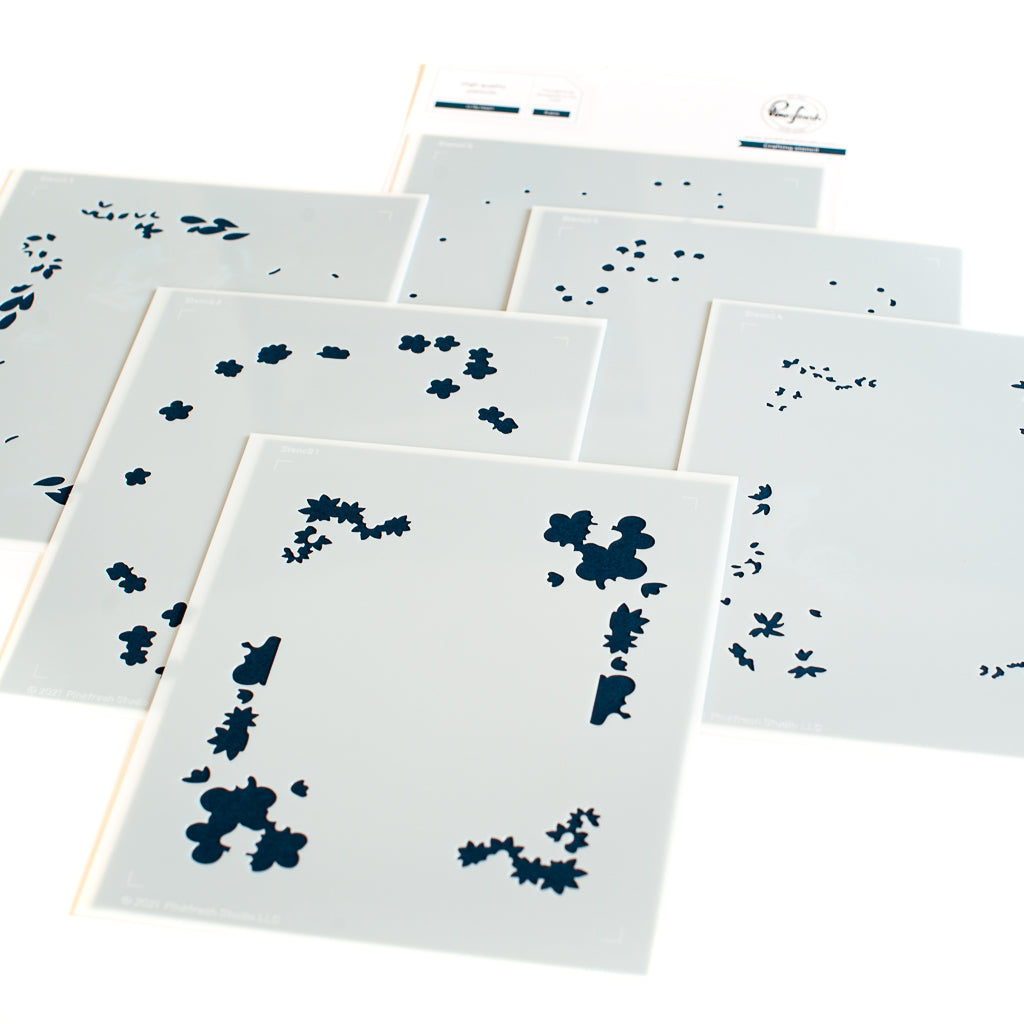 6 piece layering stencil set made to coordinate with the In My Heart stamp set and In My Heart die set. There is a separate stencil for each layer, with guidelines on each stencil for perfect alignment when using alone. When using the stencils with the stamped images you will forego the alignment guides, and instead align each layer to the stamped images.