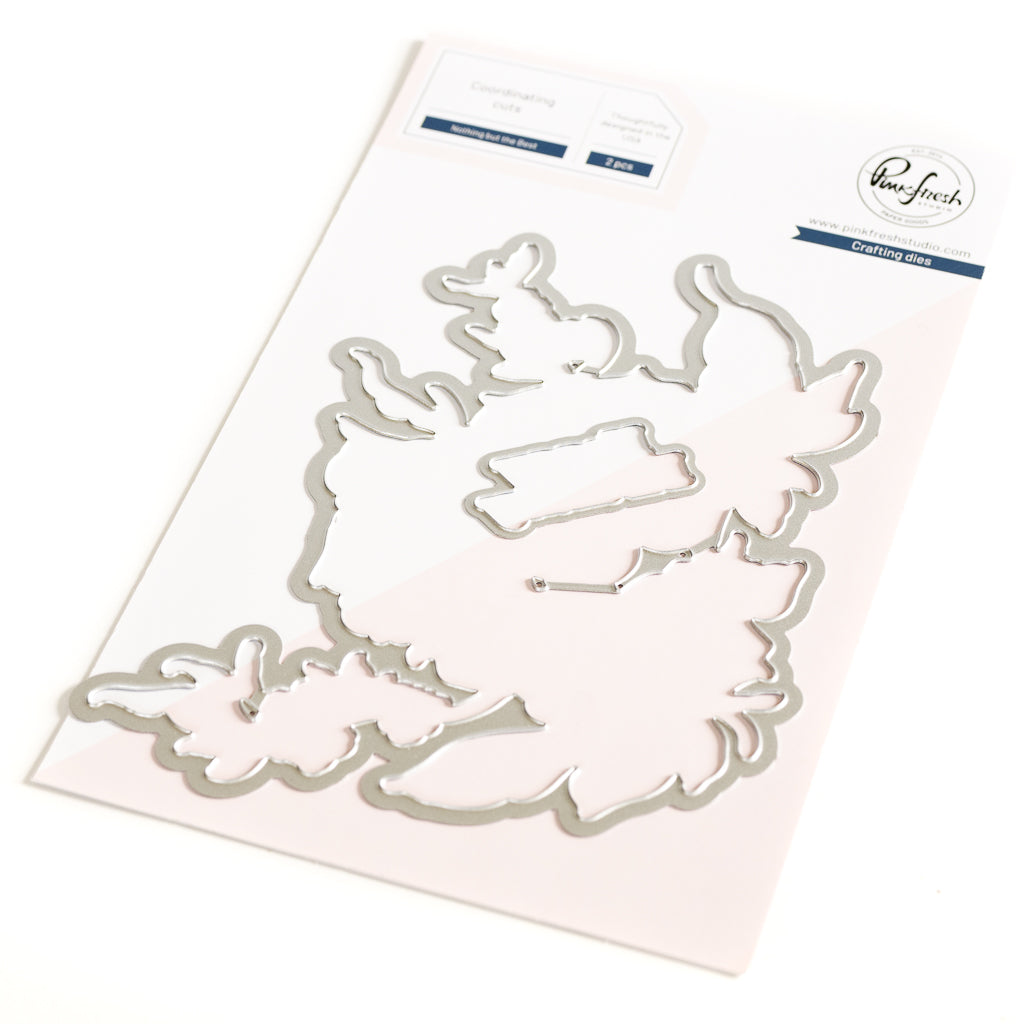2 pc die set to coordinate with the Nothing but the Best stamp set, and Nothing but the Best layering stencil set. This die cuts around the floral element, leaving a thin border. There is also a die to cut out the Happy Birthday sentiment.