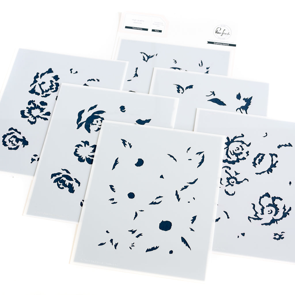 6 piece layering stencil set made to coordinate with the Peony Fantasy stamp set, Peony Fantasy hot foil plate and Peony Fantasy die set.