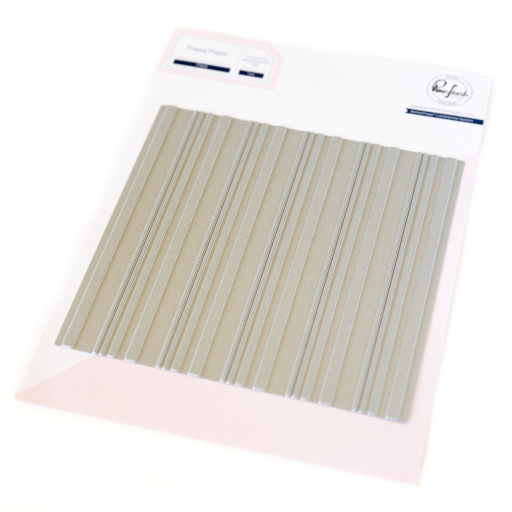 1 pc press plate set designed by Kaitlin Sheaffer. Easily create clean & modern plaid backgrounds with this versatile new press plate design! Using the measurement guides on your BetterPress and/or hot foil system, you will flip the plate to press or foil two times to create the beautiful plaid design.
