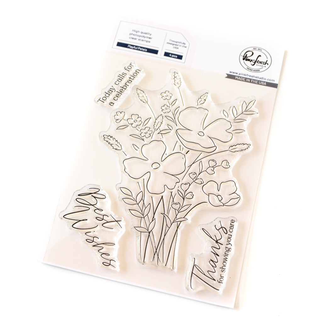 4 x 6 photopolymer clear stamp set designed by Inna Moreva. Made to coordinate with the Playful Petals die set & Playful Petals layering stencil set. There is also a matching Playful Petals press plate. Available for purchase separately.