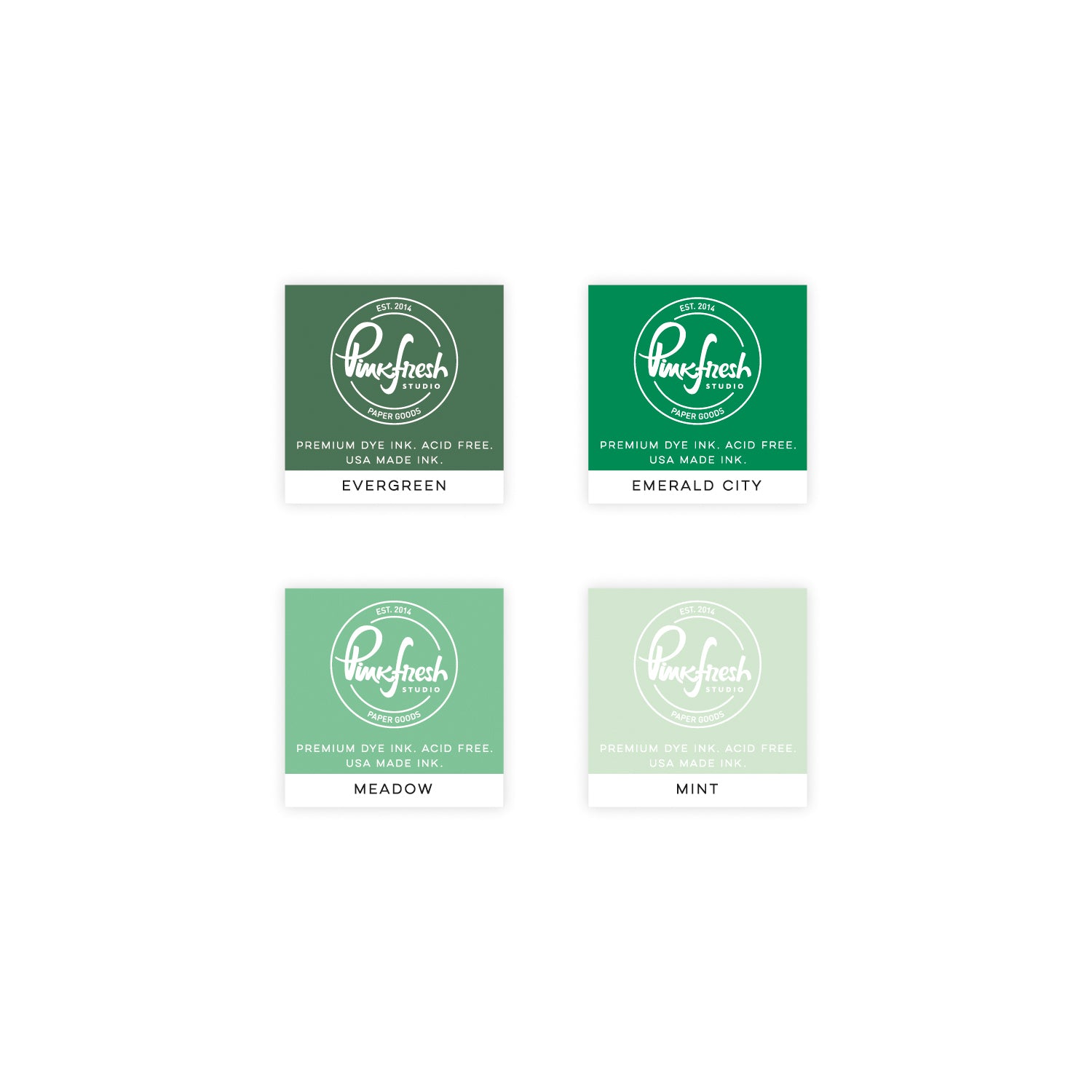 This is a pack of four mini ink cubes. Colors included are Evergreen, Emerald City, Meadow, and Mint.
