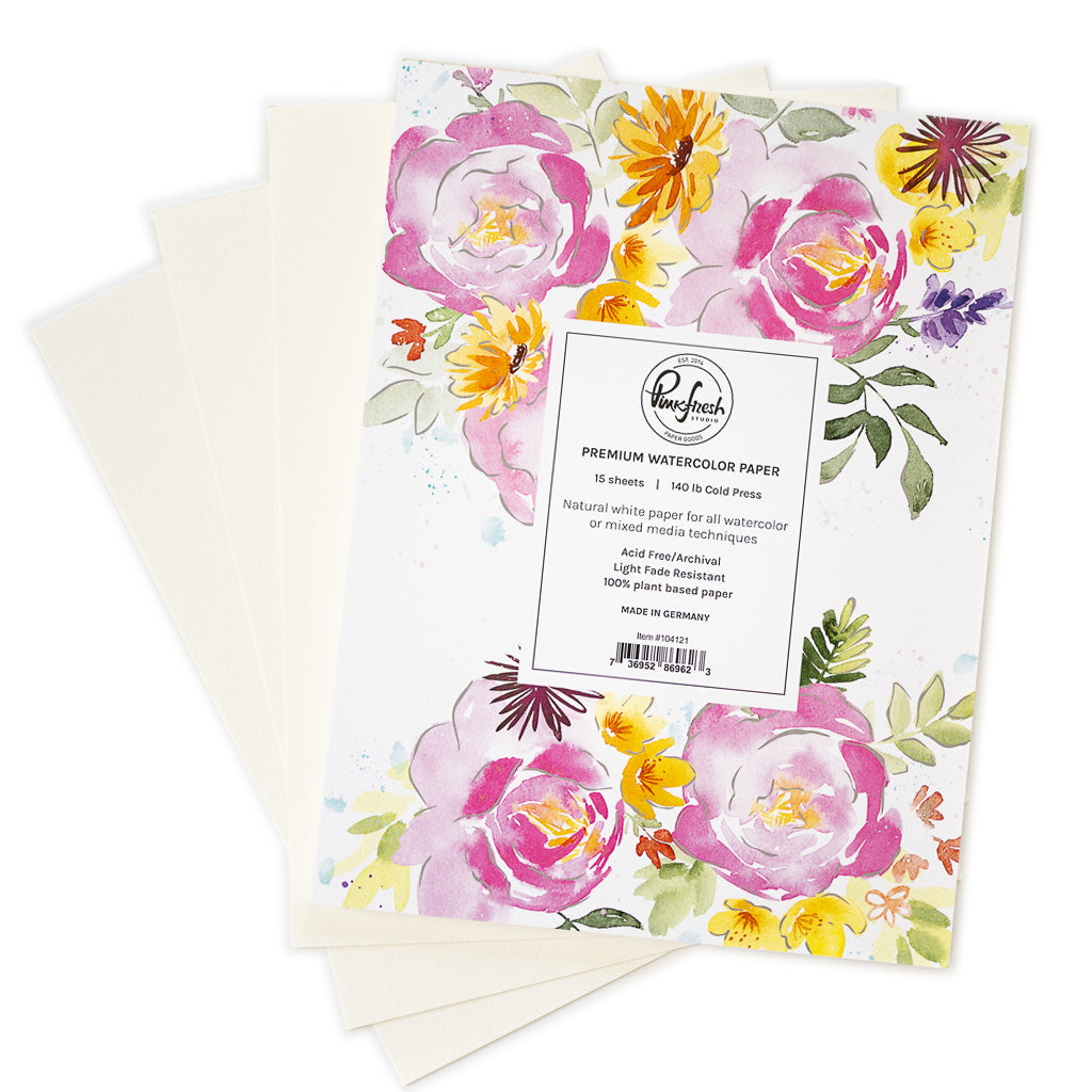 A pack of premium watercolor paper with 15 sheets included. Our 140 lb cold-press watercolor paper is natural white and perfect for watercolor, mixed media, and letterpress techniques. It is acid-free/archival, light fade-resistant, and 100% plant-based/vegan. Use it with our liquid watercolor to achieve stunning watercolor washes and beautiful tonal ranges. It is also perfect for using with a BetterPress letterpress system, using all 72 shades of our premium dye inks to press any of your press plate designs into this entirely plant-based paper.