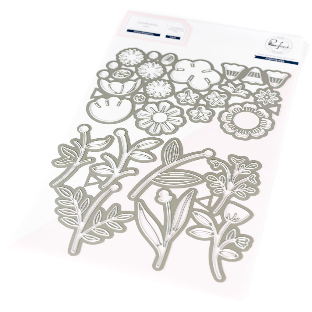 Easily create your own flower clusters in custom colors using any of our full rainbow of inks by first stenciling the individual floral and greenery pieces, then quickly cutting out with the coordinating 1-piece dies.The dies can also be used alone with colored cardstock, with or without additional ink blending over the top.