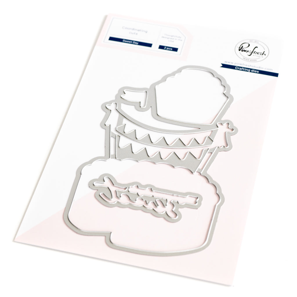 2 pc die set to coordinate with the Sweet Day stamp set, Sweet Day hot foil plates and Sweet Day layering stencil set. There is a 1-piece die that cuts out the cake images, leaving a thin border around each image. There is also a die for the “Hope your day is sweet” sentiment in the stamp set.